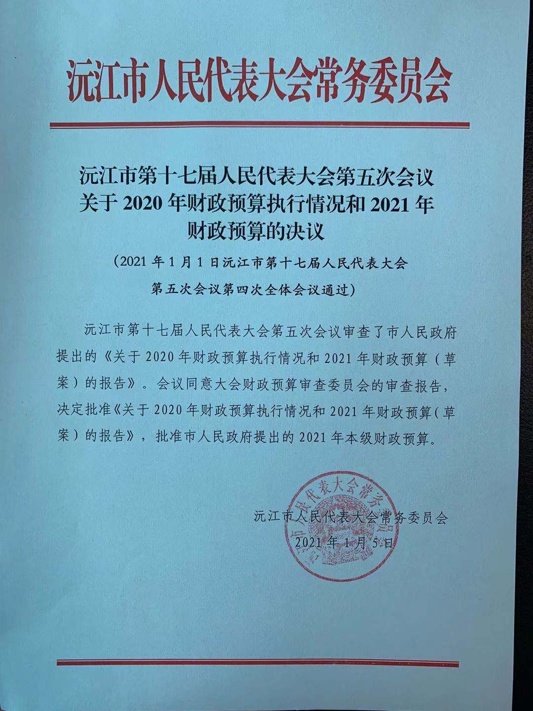 0、公開目錄.xls 1、關于2020年財政預算執行情況和2021年財政預算(草案)的報告.doc 2、沅江市2021年納入預算轉移支付情況說明.docx 3、政府舉借債務及2020年債券資金使用情況說明.docx 4、沅江市2021年三公經費預算變動情況說明.docx 5、財政扶貧資金管理辦法-沅財農(2019)10號.pdf 6、人大批復2021年本級預算決議.jpg 7、沅江市2021年政府預算公開表.xlsx
