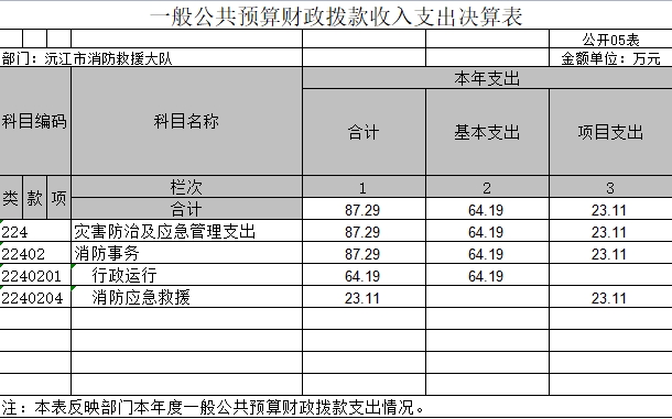 第二部分 益陽市沅江消防救援大隊2021年度部門決算表