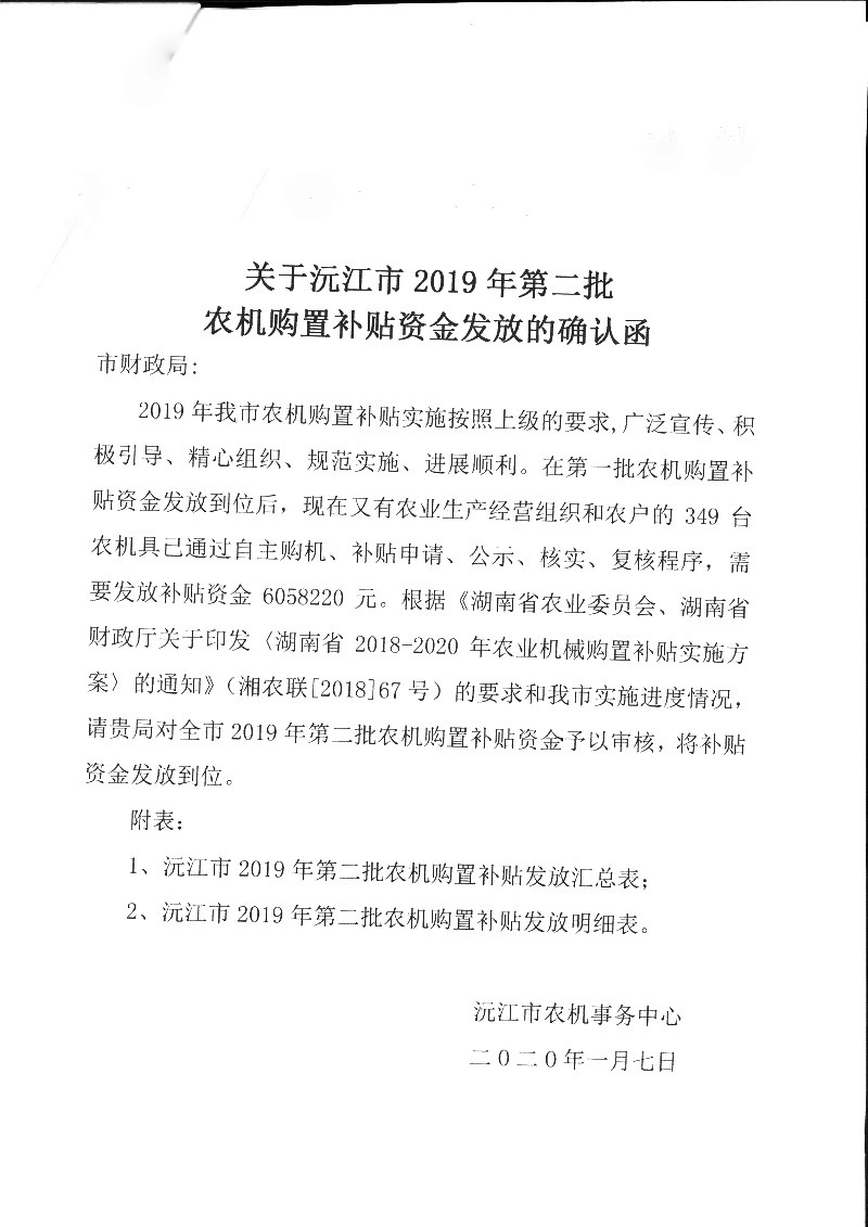 2019年農(nóng)機購置補貼資金(2019年第二批)