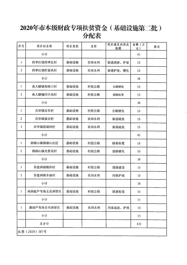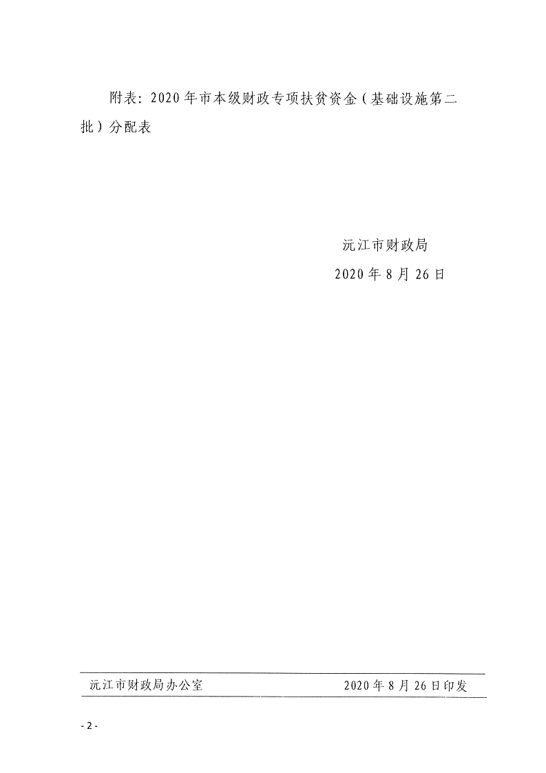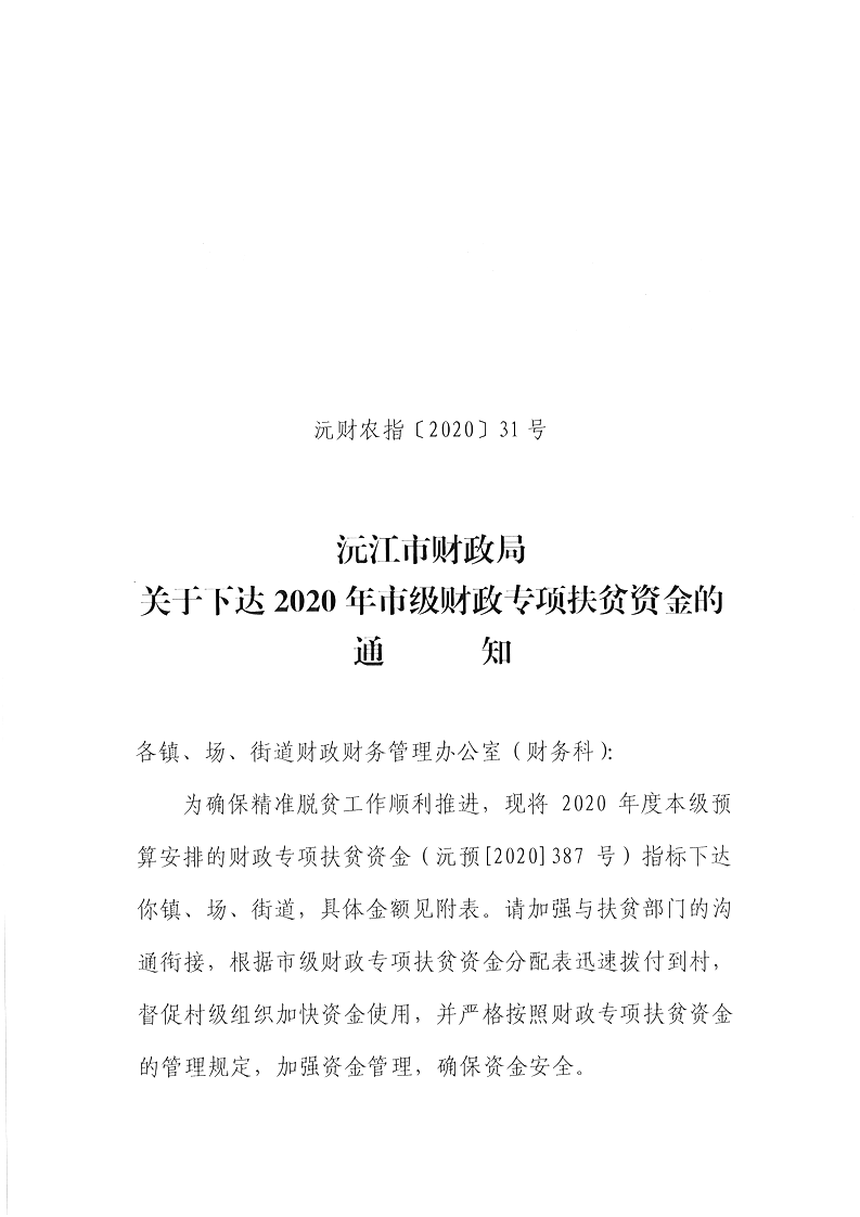 沅財(cái)農(nóng)指【2020】31號(hào) 沅江市財(cái)政局關(guān)于下達(dá)2020年市級(jí)財(cái)政專項(xiàng)扶貧資金的通知