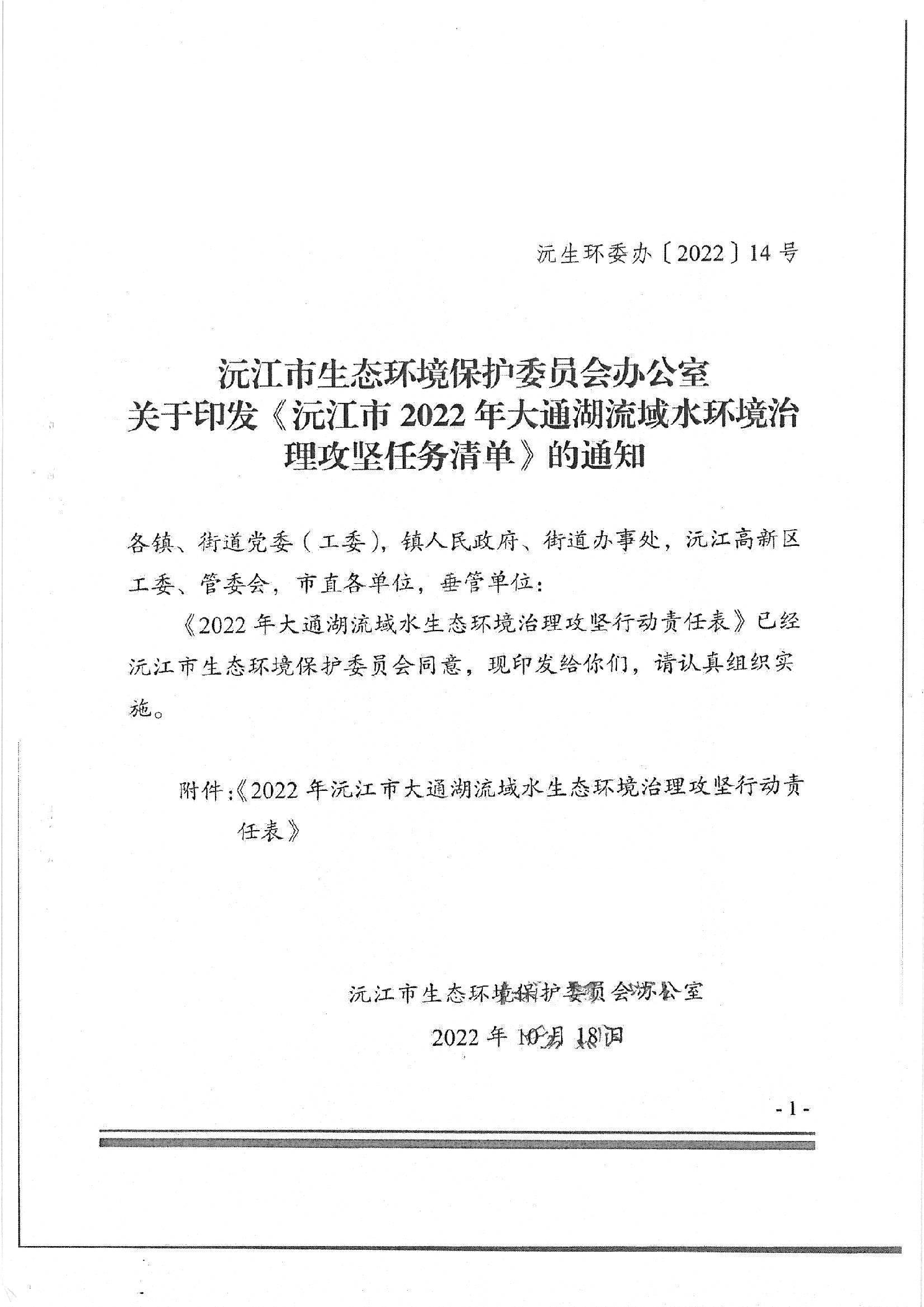 轉:沅江市生態環境保護委員會辦公室關于印發《沅江市2022年大通湖流域水環境治理攻堅任務清單》的通知