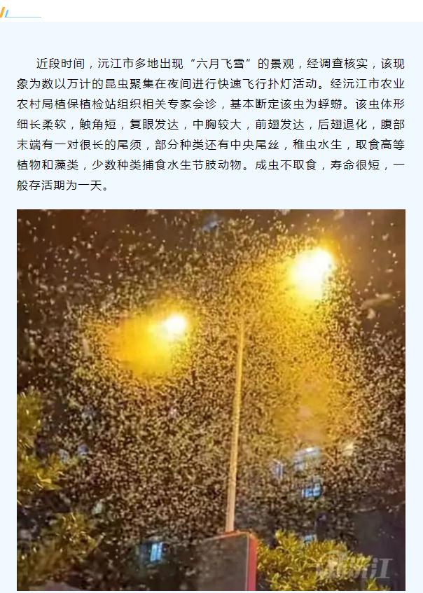 官方回應(yīng):蜉蝣聚集系正常自然現(xiàn)象
