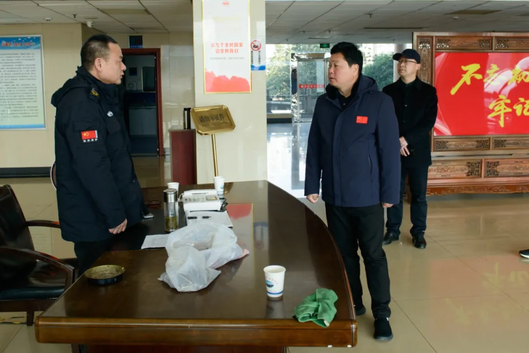 在市治大院辦公樓,楊智勇慰問(wèn)了市委辦值班工作人員、大廳安保人員,他強(qiáng)調(diào),市委辦要統(tǒng)籌好全市各單位值班值守工作,開(kāi)展值班抽查,精準(zhǔn)詳細(xì)記錄值班情況,及時(shí)傳達(dá)報(bào)告上級(jí)指示與要求;執(zhí)勤保安要強(qiáng)化巡查記錄,注意用火、用電安全,認(rèn)真做好安全生產(chǎn)工作,確保市治大院安全有序。