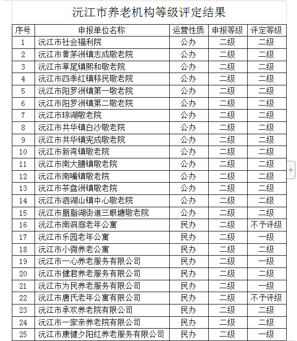 沅江市民政局關(guān)于沅江市養(yǎng)老機(jī)構(gòu)等級(jí)評(píng)定結(jié)果的公示