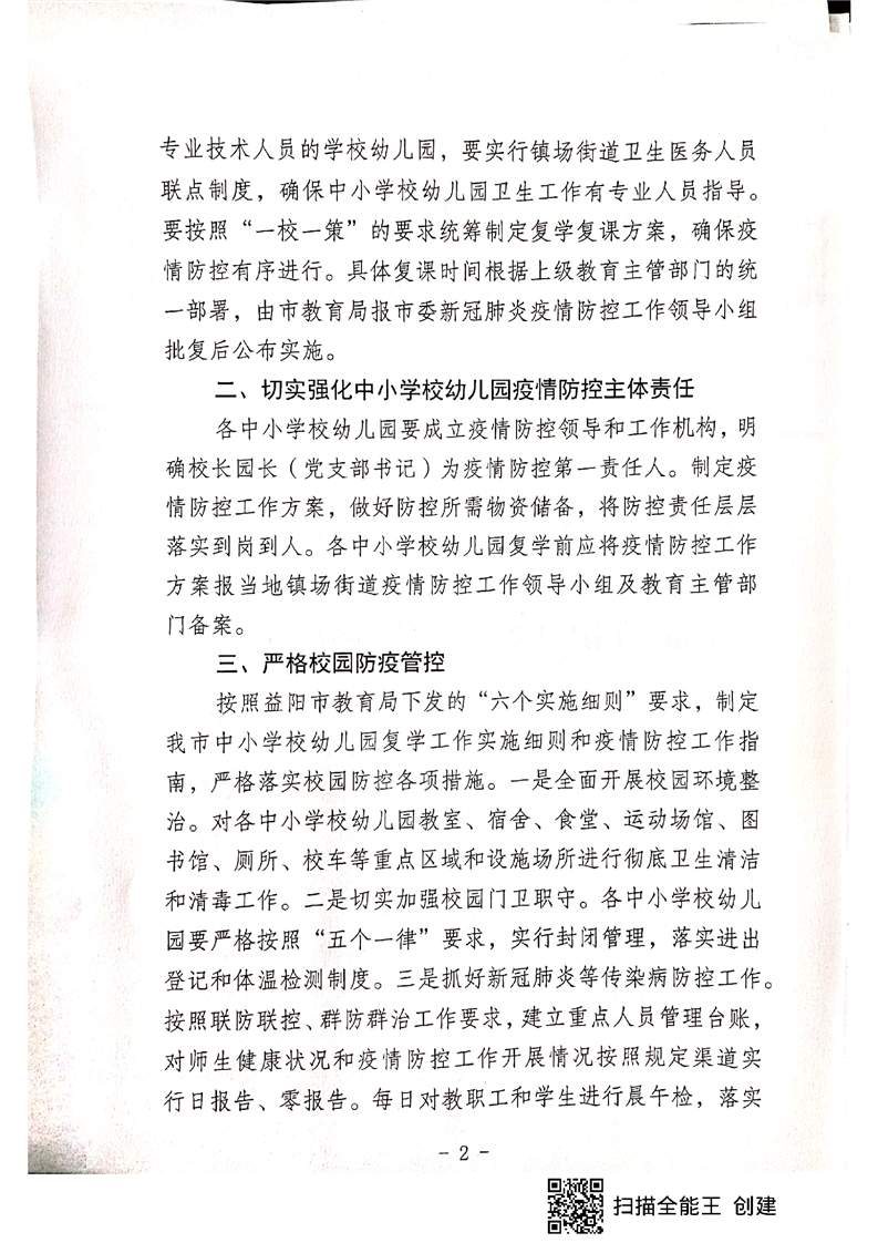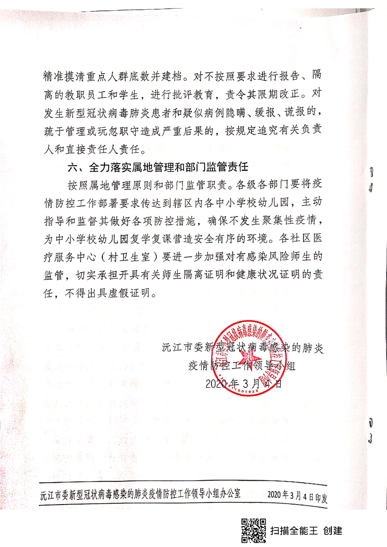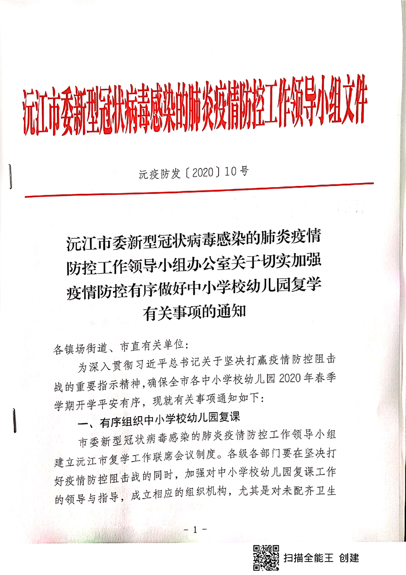 沅江市委新型冠狀病毒感染的肺炎疫情防控工作領導小組辦公室關于切實加強疫情防控有序做好中小學校幼兒園復學有關事項的通知