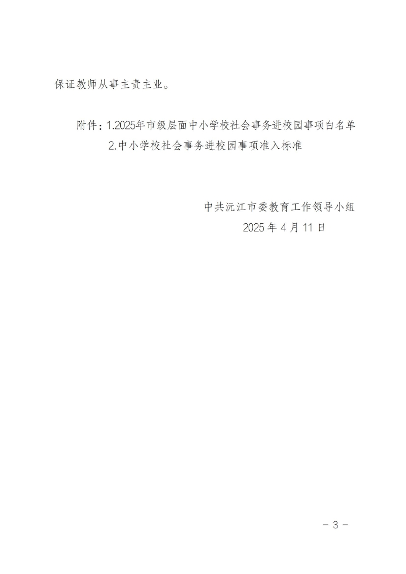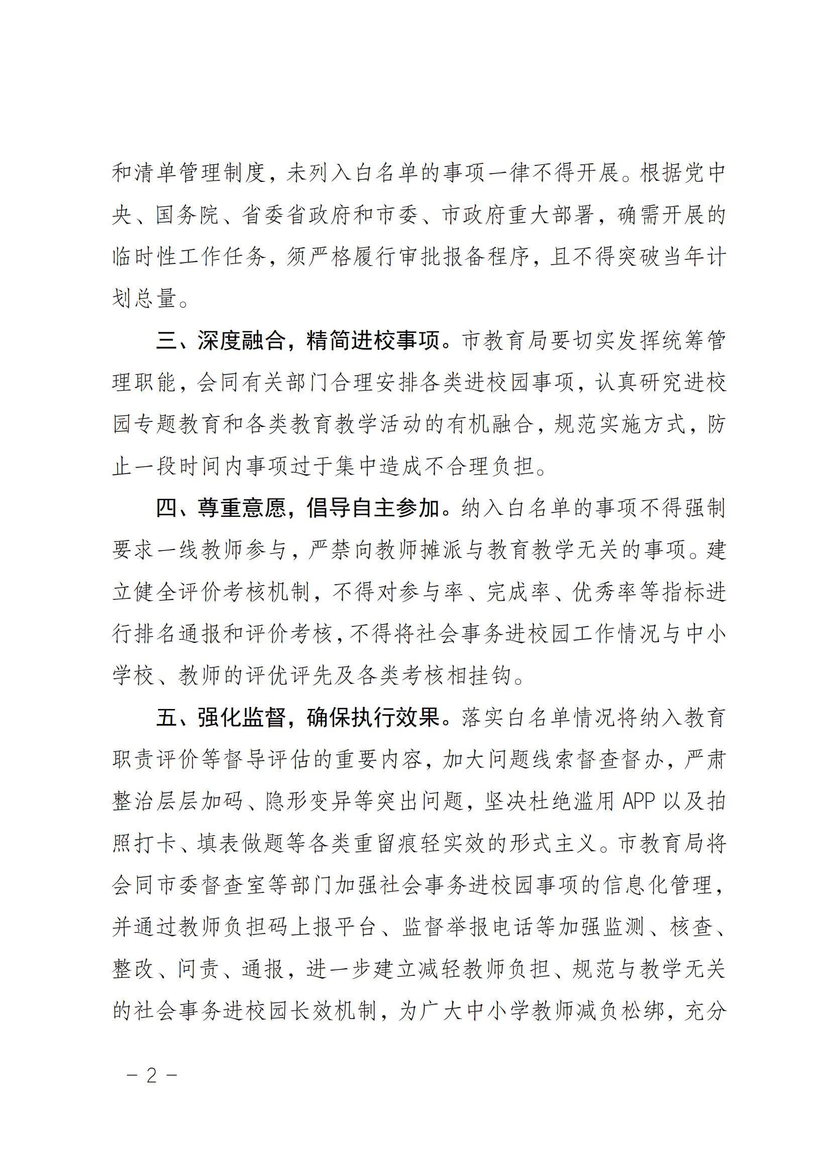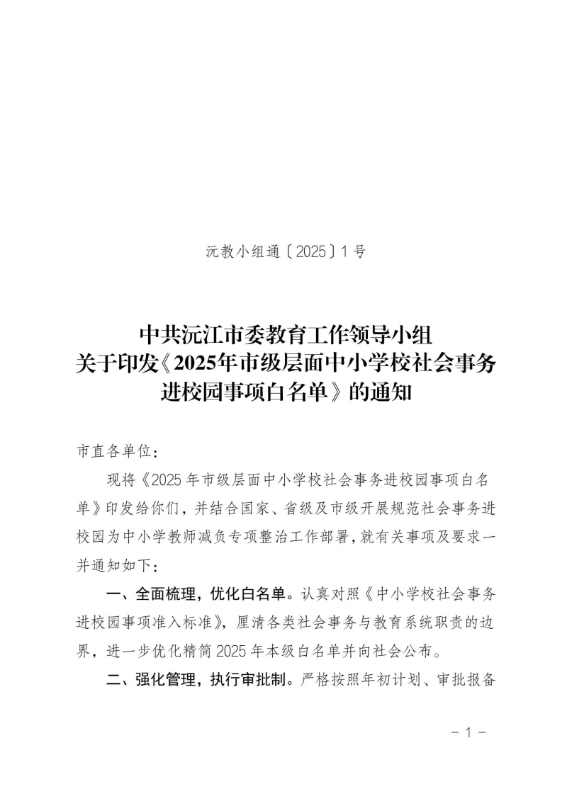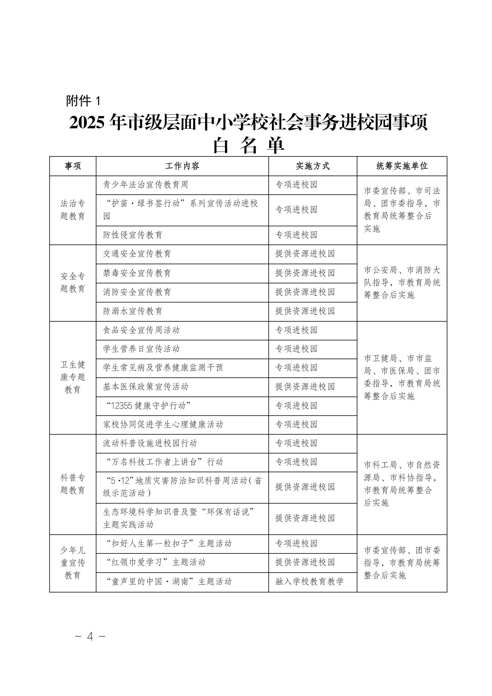 關于印發《2025年市級層面中小學校社會事務進校園事項白名單》的通知