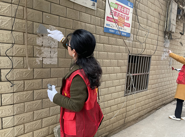 志愿者們采取鏟除清理+宣傳倡導的方法,利用鏟子、小刀等工具,對小區內樓道和外墻以及電線桿等處的非法小廣告進行“地毯式”清除,通過近兩個小時的努力,沿路墻面及樓棟內墻面的小廣告全部清理完畢,小區內面貌煥然一新。在清理“牛皮癬”的同時,志愿者們還積極地向居民宣傳,鼓勵群眾積極舉報亂貼小廣告的不文明行為,形成全民動員,群防群治的監督氛圍。此次活動的開展,不僅改善了家屬區的環境面貌,還培養了居民的環保意識,加強大家的主人翁意識,在志愿者的帶動作用,真正讓居民共同行動起來,不亂張貼小廣告,時刻發揮監督員作用,為維護社區環境獻出一份自己的力量。