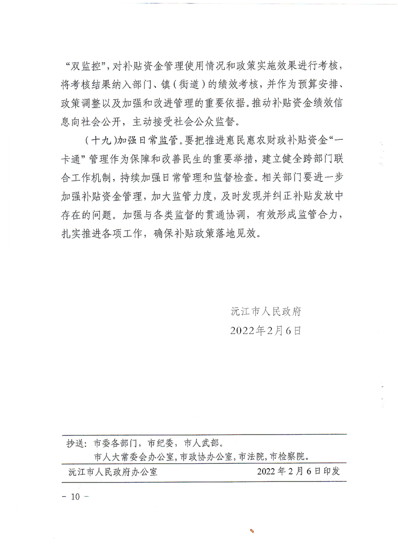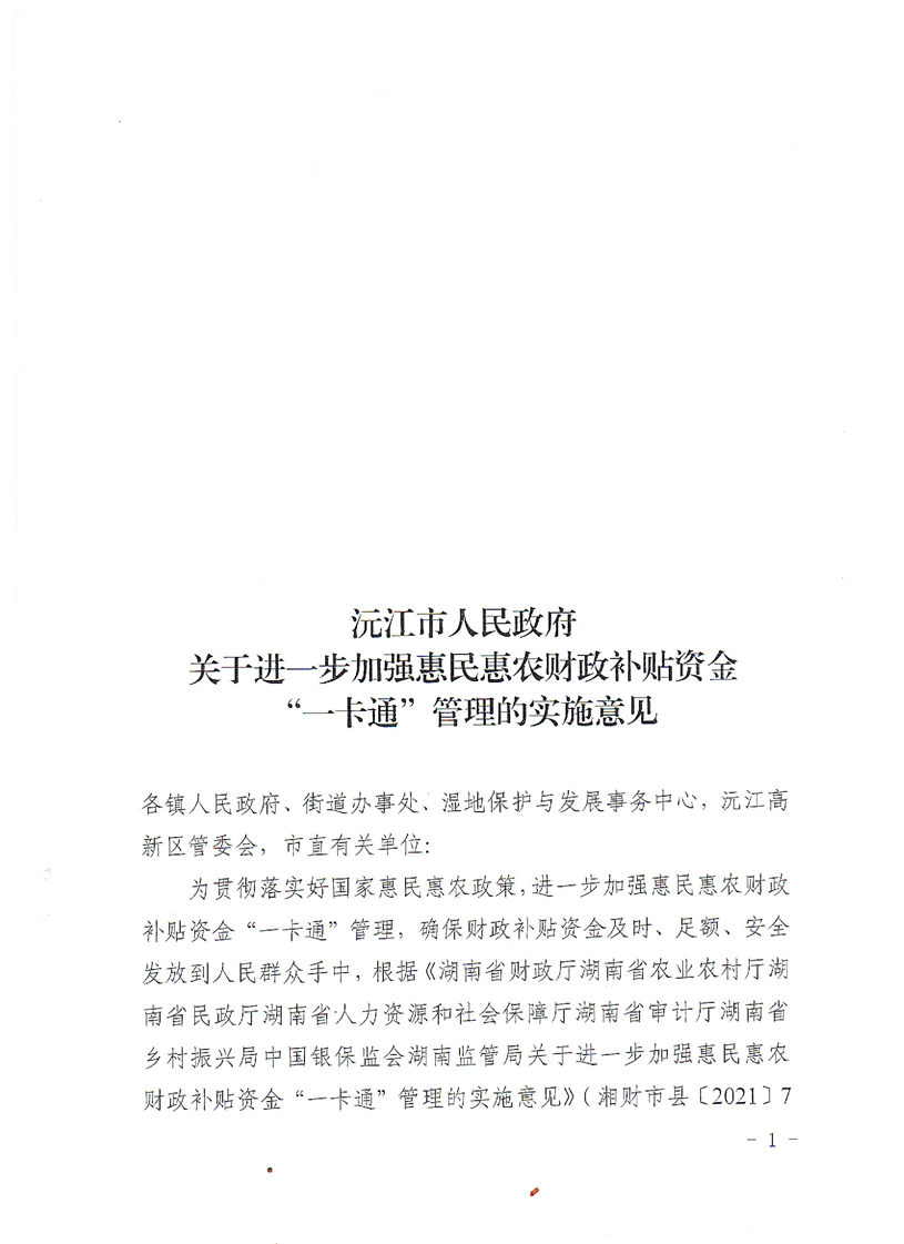 沅江市人民政府關(guān)于進(jìn)一步加強(qiáng)惠民惠農(nóng)財(cái)政補(bǔ)貼資金“一卡通”管理的實(shí)施意見