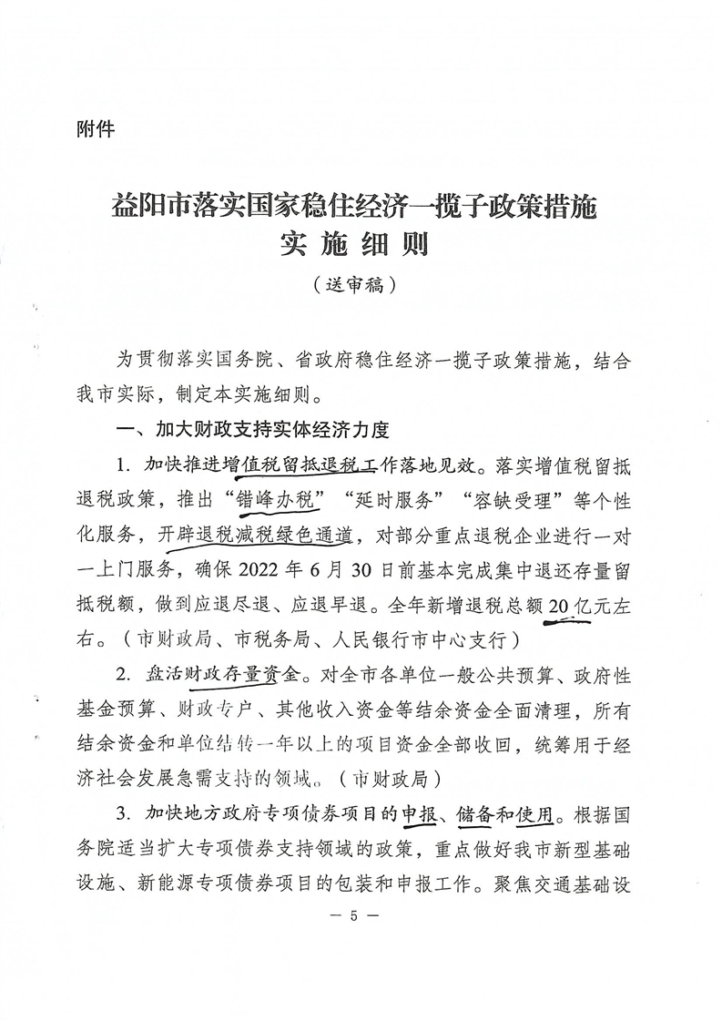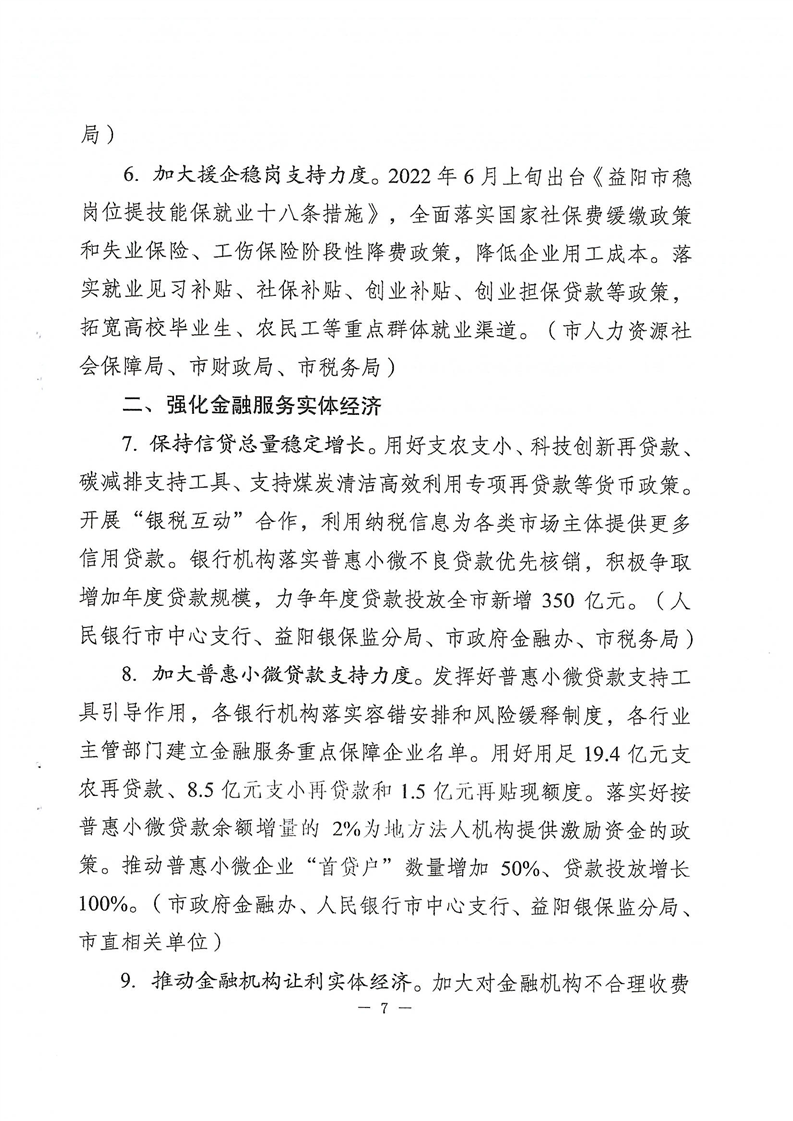 益陽市落實國家穩住經濟一攬子政策措施實施細則