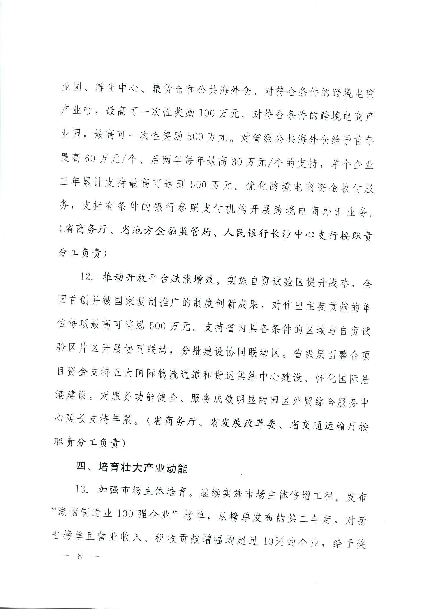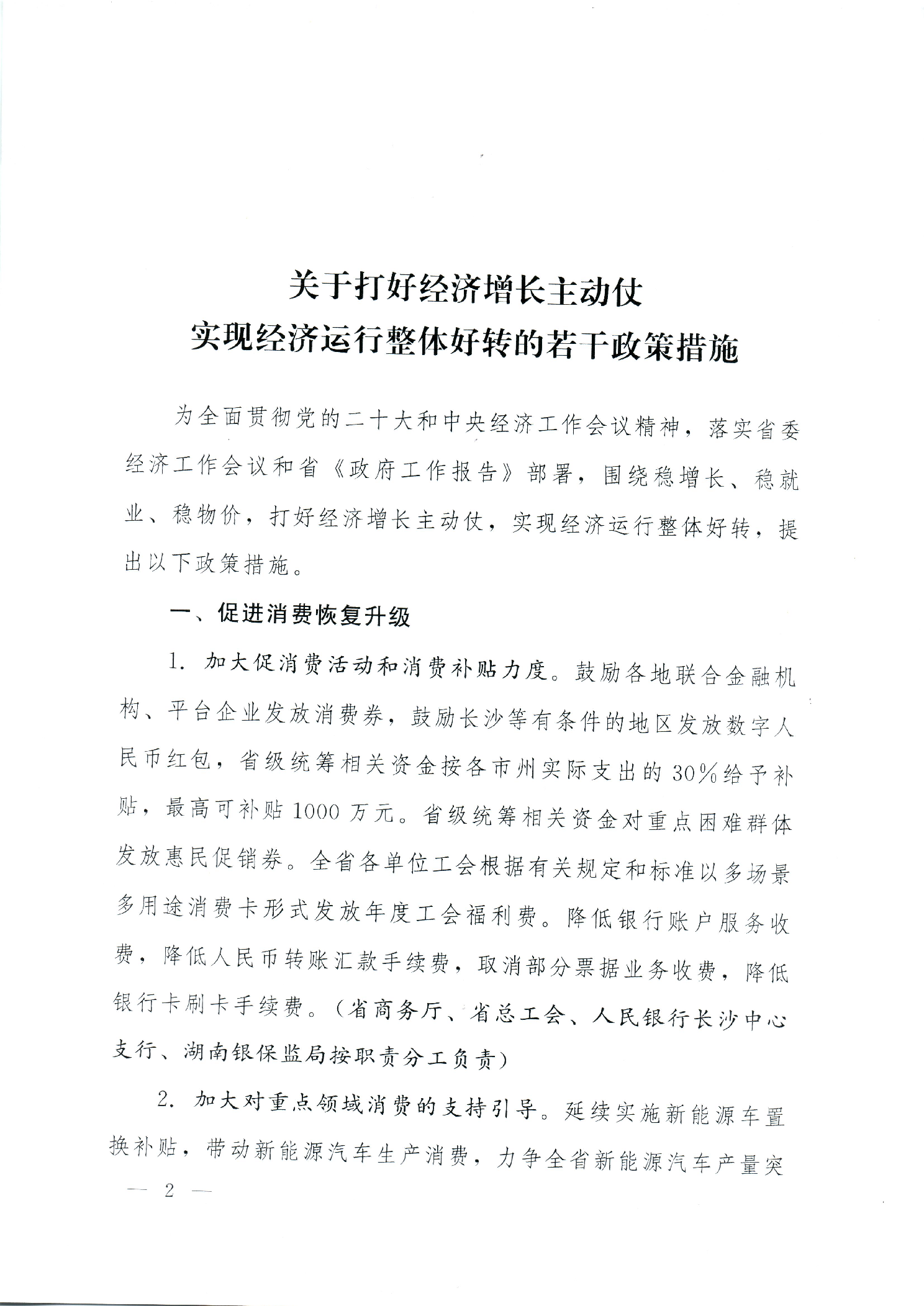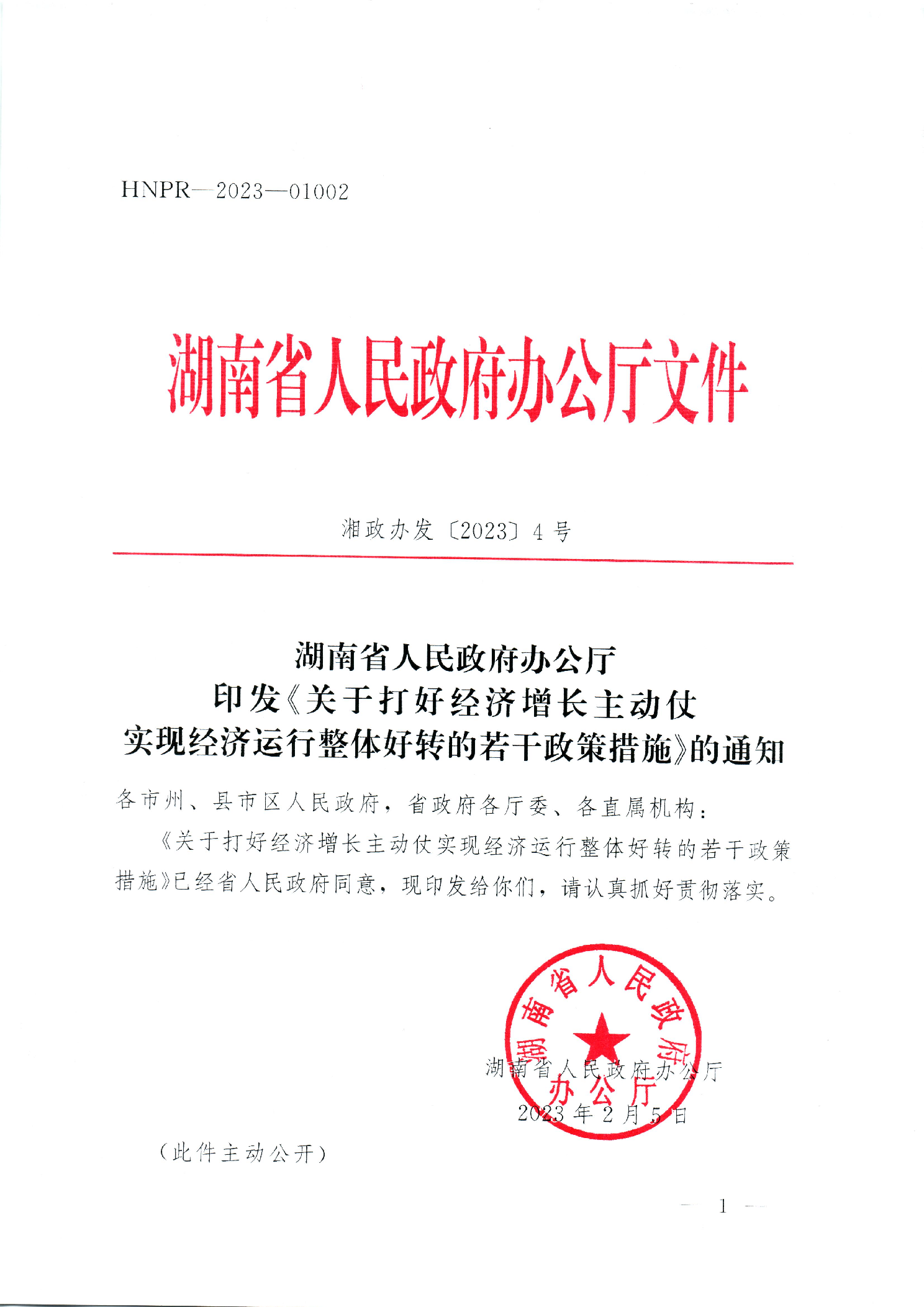 湖南省人民政府辦公廳印發《關于打好經濟增長主動仗實現經濟運行整體好轉的若干政策措施》的通知