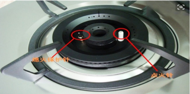 目前市場上絕大多數(shù)產(chǎn)品使用的是熱電偶式熄火保護裝置,灶頭有兩個探針。(見圖4)