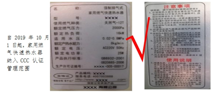 1.家用燃?xì)鉄崴鲬?yīng)有CCC標(biāo)志和能效標(biāo)識;