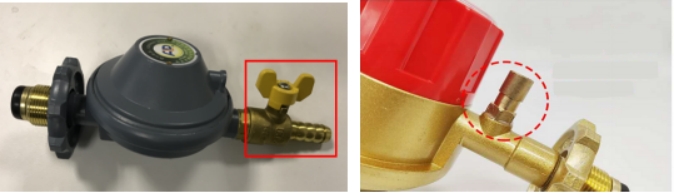 家用調(diào)壓器出口為軟管接頭(“寶塔頭”)時,應(yīng)在進口側(cè)或出口側(cè)設(shè)置過流切斷安全裝置。(見圖7)