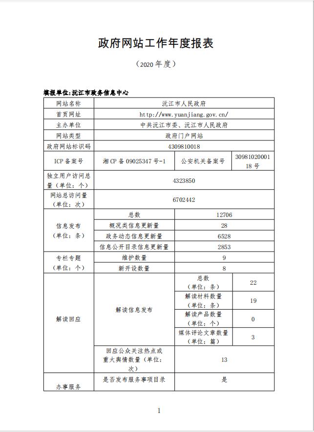 2020年度沅江市人民政府網(wǎng)站工作年度報(bào)表