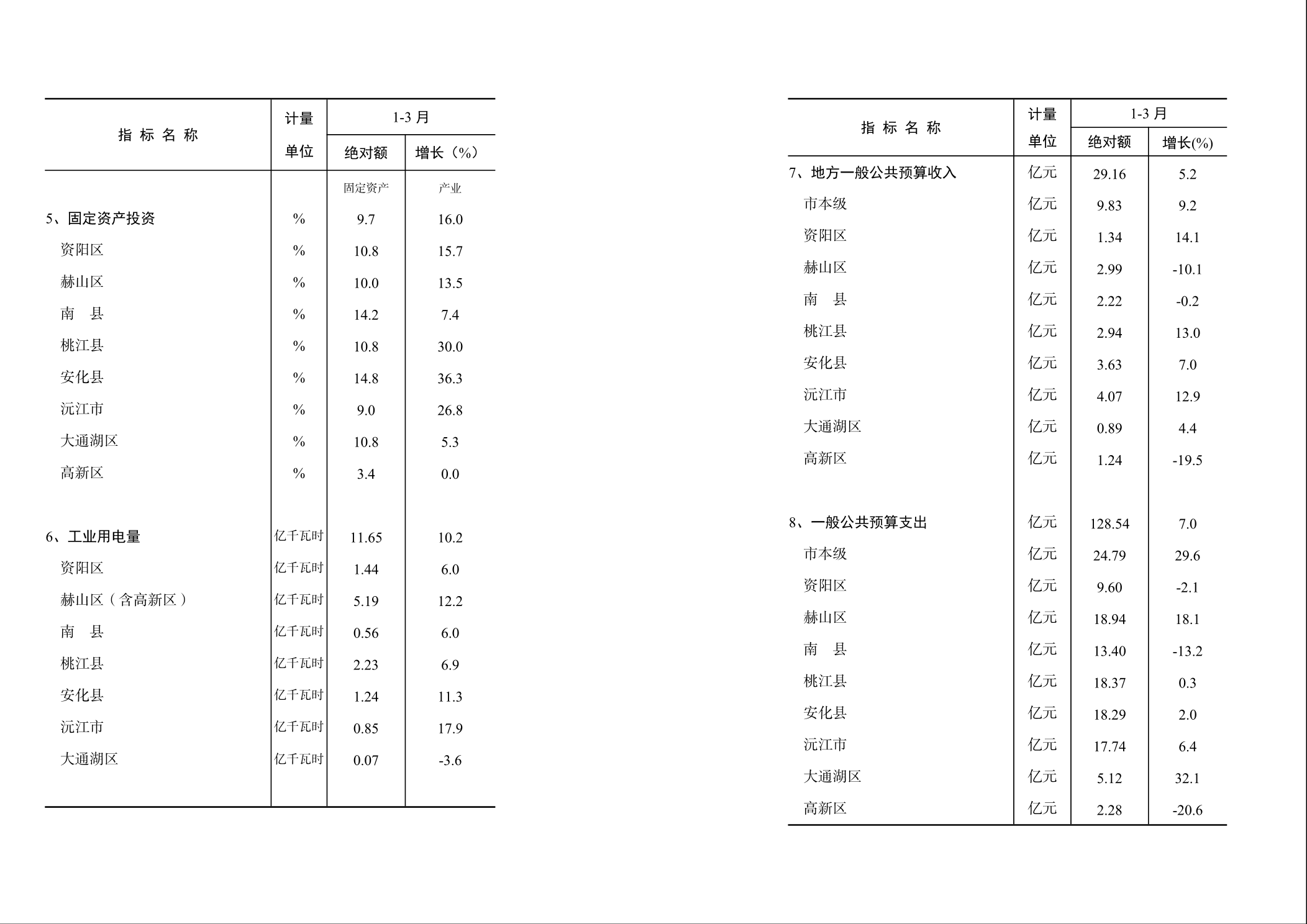 沅江市2024年1-3月經濟信息