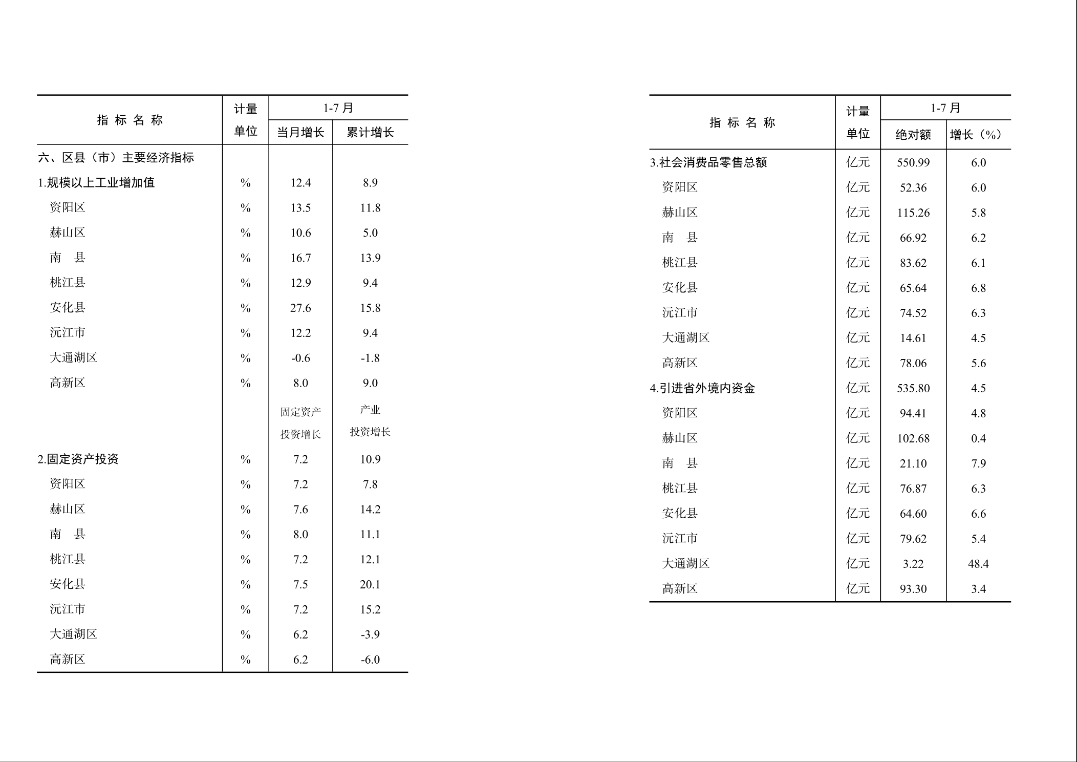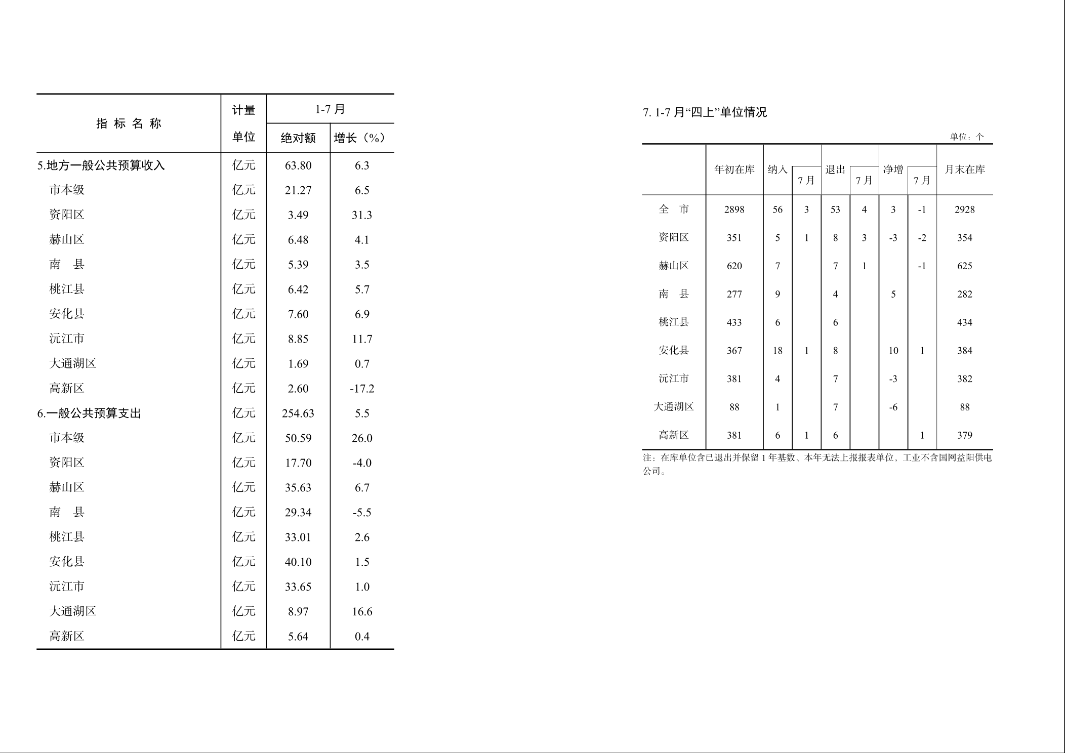 沅江市2024年1-7月經濟信息