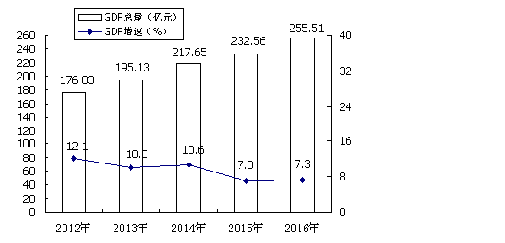 2012年-2016年地區(qū)生產(chǎn)總值及其增長速度