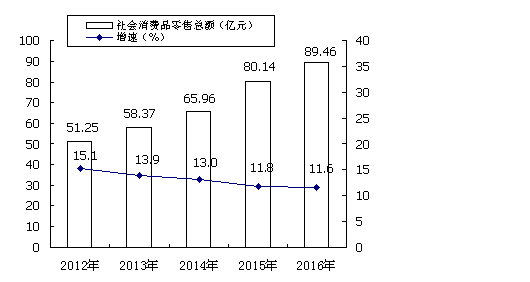 2012年-2016年社會消費品零售總額及其增長速度