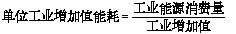 單位工業增加值能耗 指一定時期內,一個國家或地區每生產一個單位的工業增加值所消耗的能源。計算公式為: