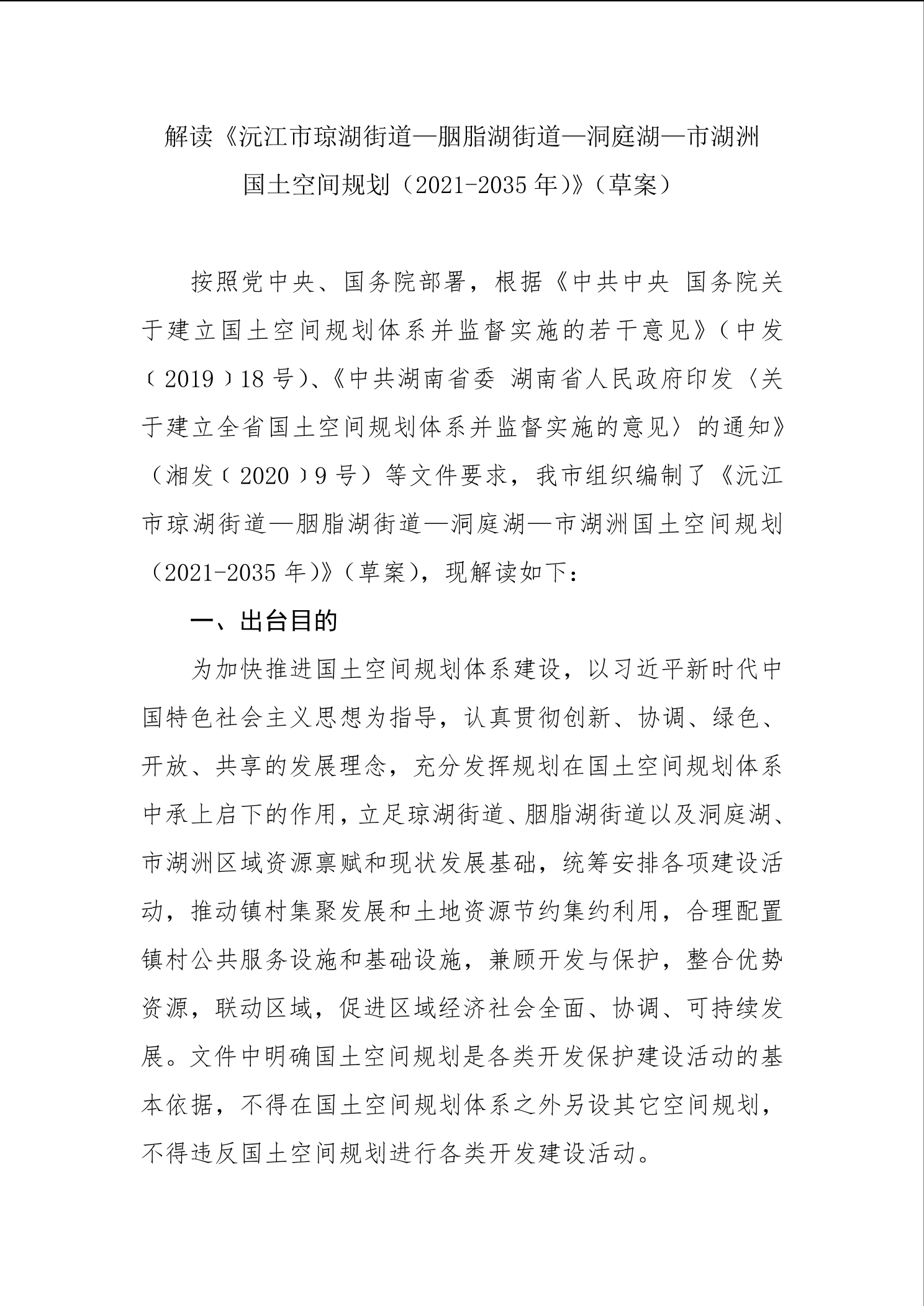 沅江市瓊湖街道—胭脂湖街道—洞庭湖—市湖洲國土空間規劃(2021-2035年)公示