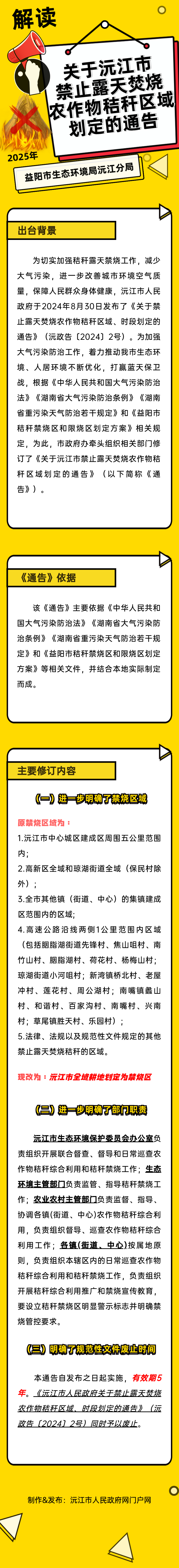 【H5】益陽市生態環境局沅江分局《關于沅江市禁止露天焚燒農作物秸稈區域劃定的通告》的解讀