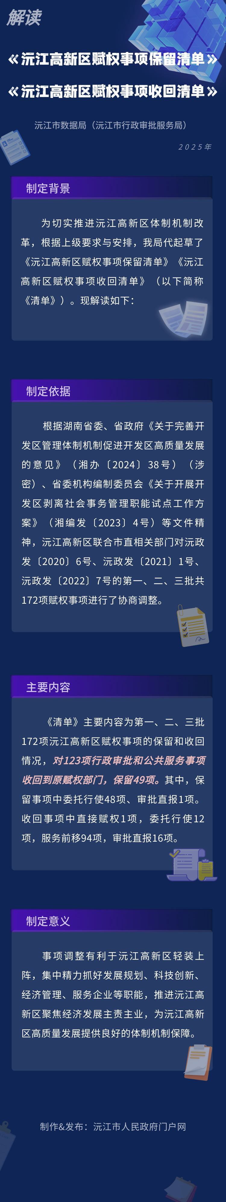 【H5】沅江市數據局關于《沅江高新區賦權事項保留清單》《沅江高新區賦權事項收回清單》的解讀