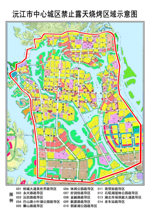 附件:沅江市中心城區禁止露天燒烤區域示意圖