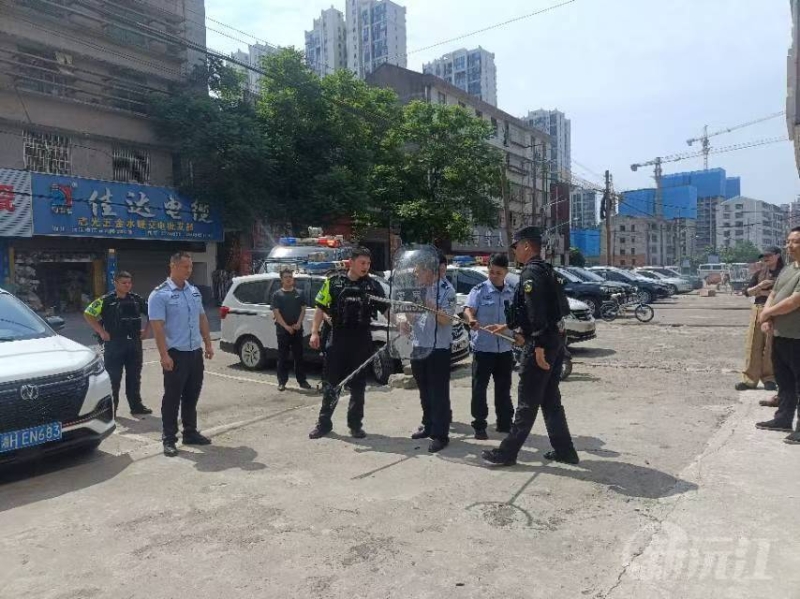 隨后,警務站民警帶領社區工作人員開展了模擬社區發生持器械傷人事件的處置演練;顒又,持械傷人事件發生后,社區巡邏隊迅速啟動應急預案,第一時間制服了持械“暴徒”,真實演練了社區遭遇突發事件后的處置場景。