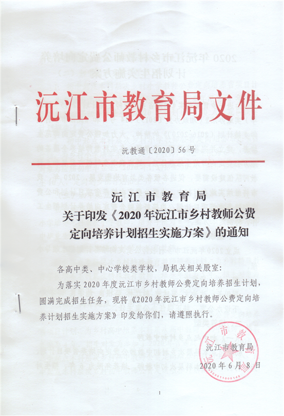2.沅江市2020年各培養類型公費定向師范生的具體招生辦法,以湖南省教育廳2020年發布的招生文件規定為準。
