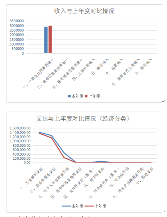 當年收入支出預算執行基本情況,與上年度對比情況,包括增減絕對值與幅度,增減變動主要原因(可用柱形圖或折線圖)。