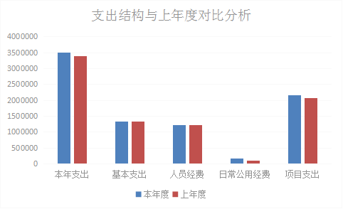 當年收入支出預算執行基本情況,與上年度對比情況,包括增減絕對值與幅度,增減變動主要原因(可用柱形圖或折線圖)。