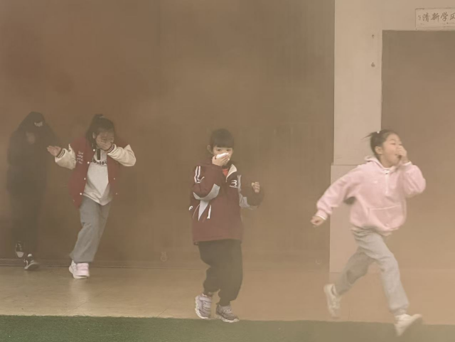 警報(bào)響起那一刻,各班學(xué)生反應(yīng)迅速。在班主任的指揮下,孩子們用濕毛巾緊緊捂住口鼻,彎腰俯身,沿著預(yù)定路線快速向操場轉(zhuǎn)移。樓道里,學(xué)校安全員和教師們堅(jiān)守在關(guān)鍵位置,確保疏散過程不擁擠、不慌亂。
