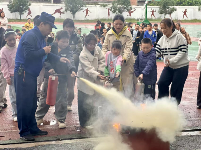 短短2分23秒后,全校師生已全部安全抵達(dá)操場指定區(qū)域。整個撤離過程快而有序,靜而不亂,達(dá)到了預(yù)期效果。集結(jié)完畢后,來自沅江市消防宣傳中心的工作人員為師生們帶來了一場生動的消防知識實(shí)操課。“使用滅火器要記住四個字:提、拔、握、壓。”專業(yè)人員現(xiàn)場演示了滅火器的正確使用方法,并邀請學(xué)生上臺親手操作。初次接觸滅火器的四年級學(xué)生吳梓敬在指導(dǎo)下成功“撲滅”了模擬火源,“原來滅火時不慌張,要對準(zhǔn)火焰根部,今天學(xué)到了真本領(lǐng)。”