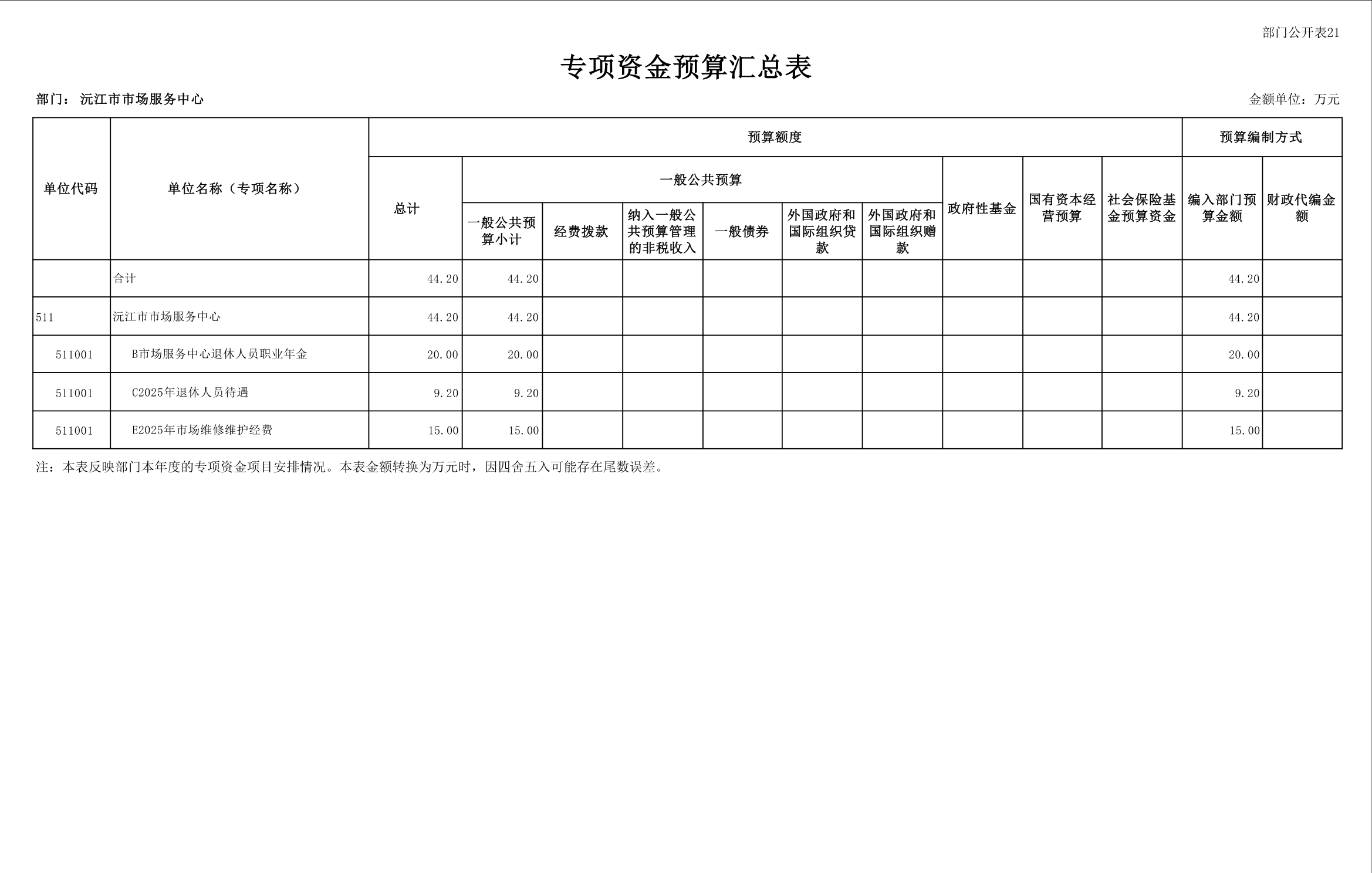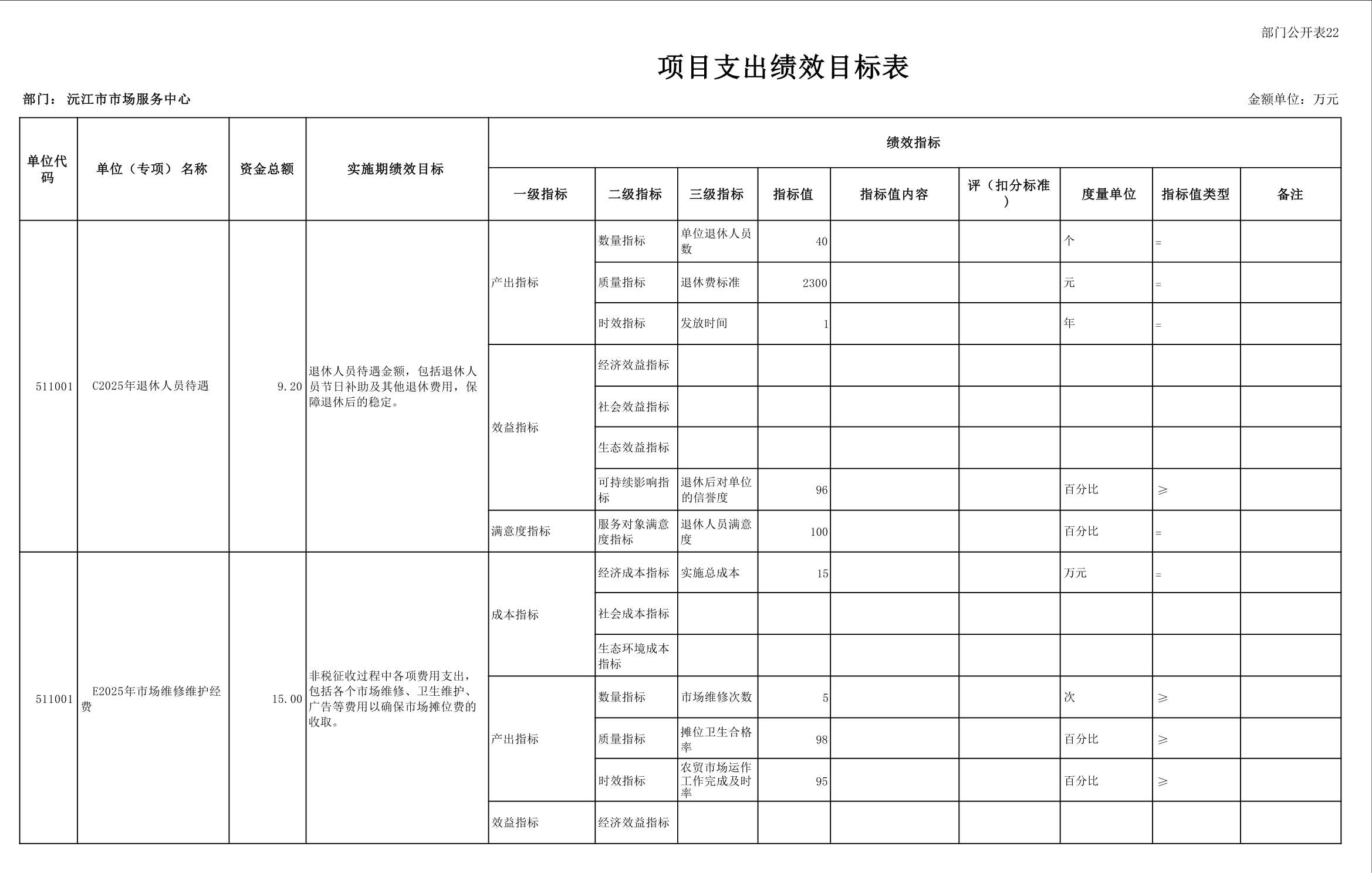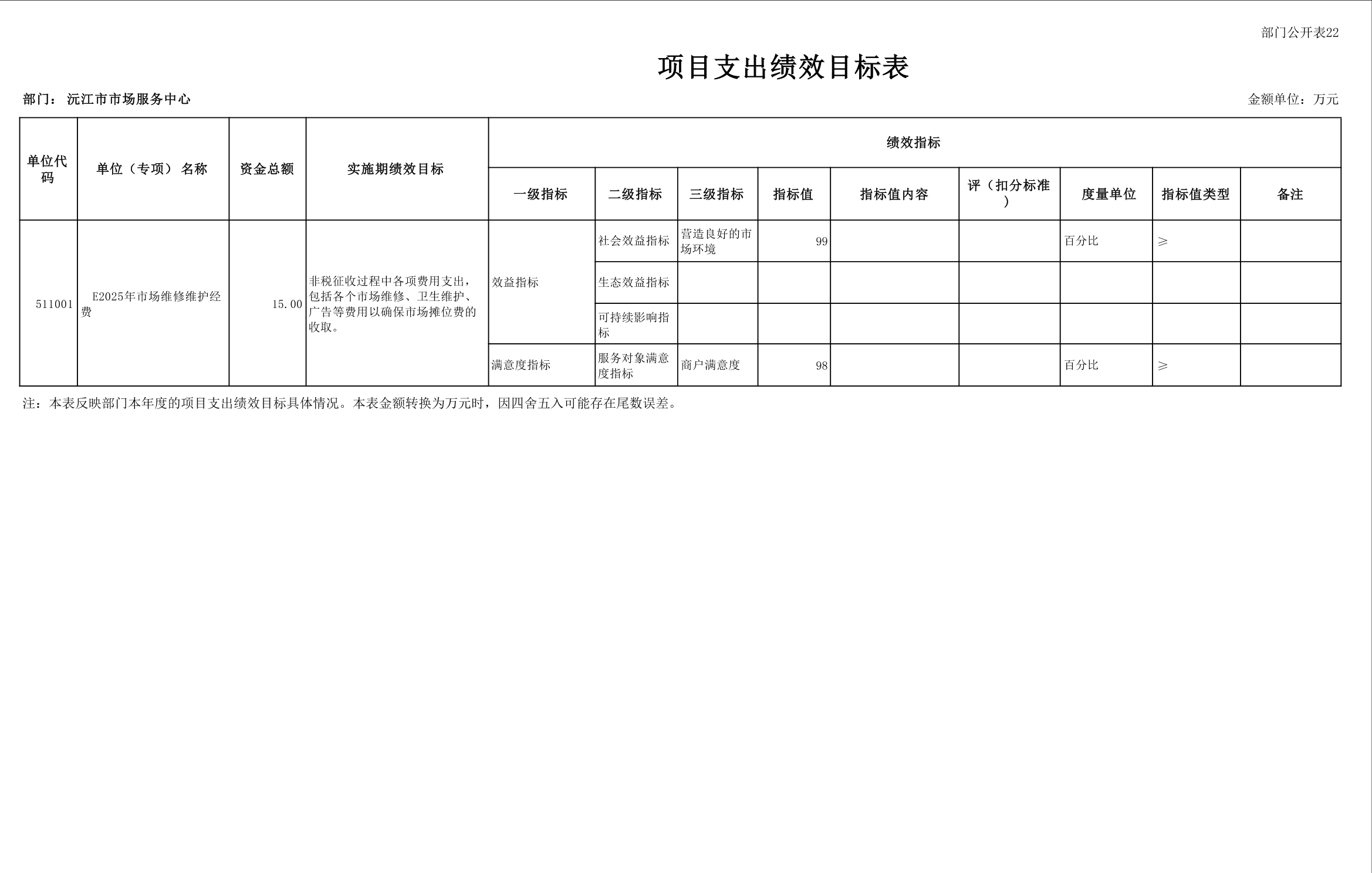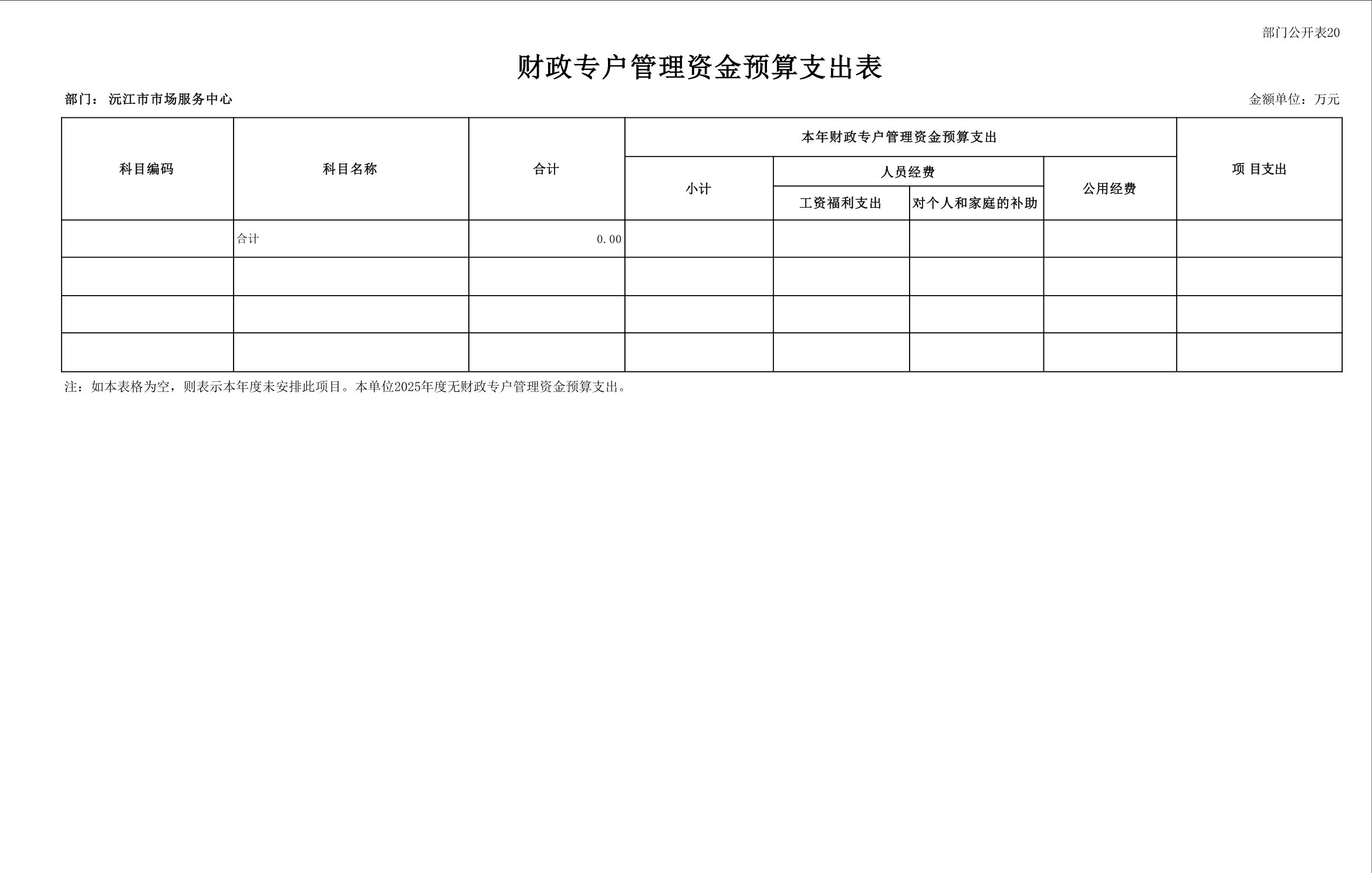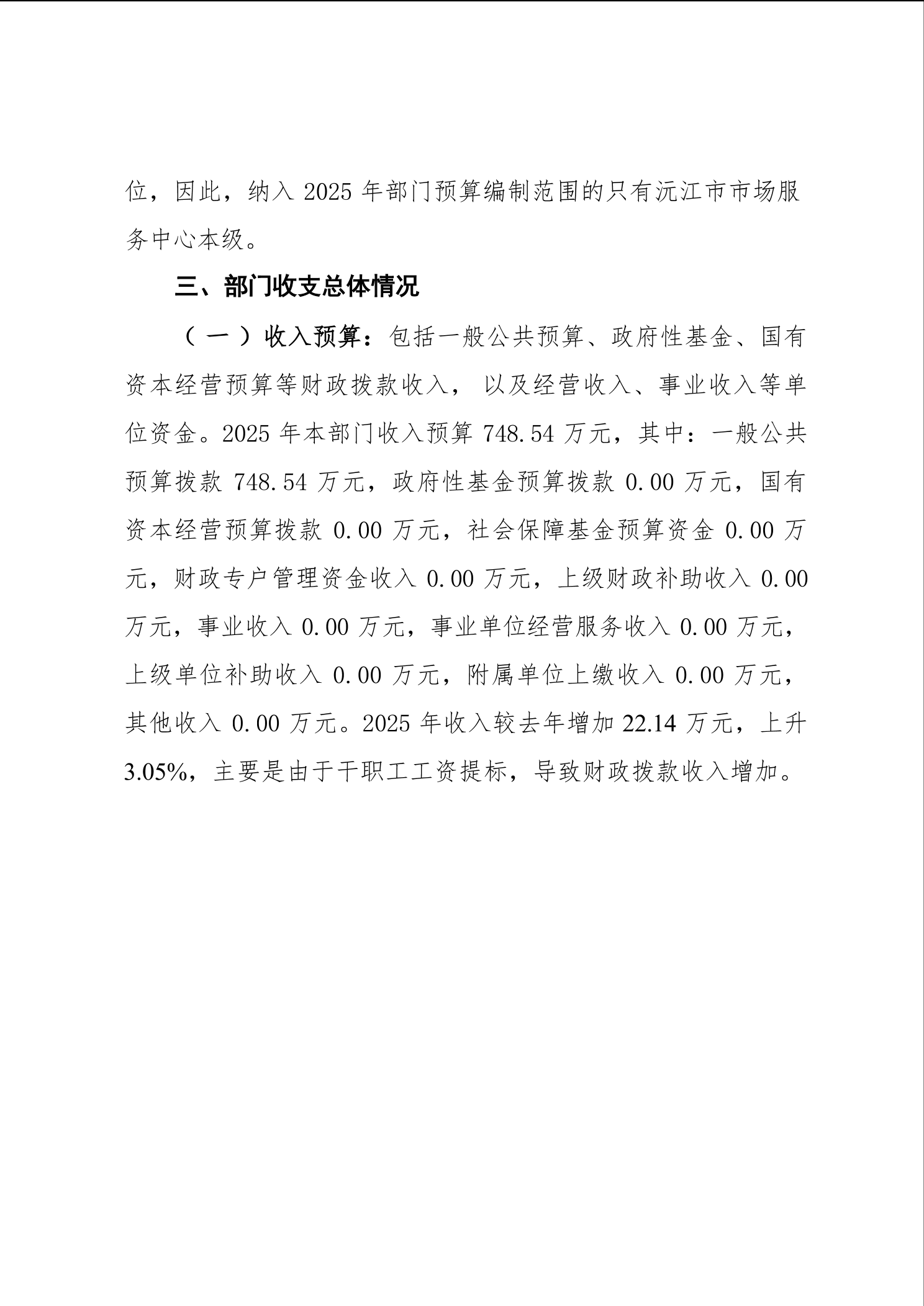 2025 年沅江市市場(chǎng)服務(wù)中心部門預(yù)算公開