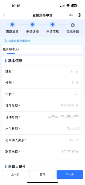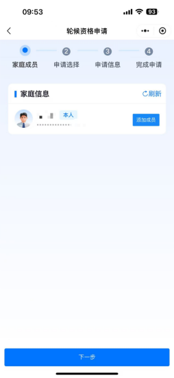 九、家庭成員中如有共同申請人“添加成員”即可,獨自申請就點擊“下一步”。