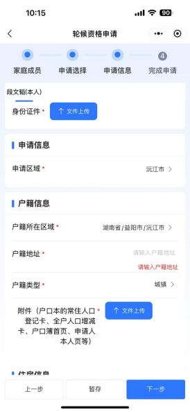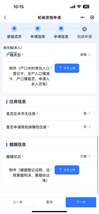 十、根據自身情況填寫:“城鎮住房困難家庭、新市民青年人、工薪收入群體各類引進人才家庭”。選擇后點擊“下一步”。
