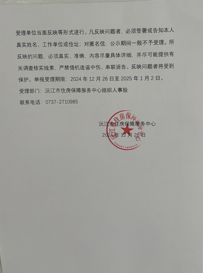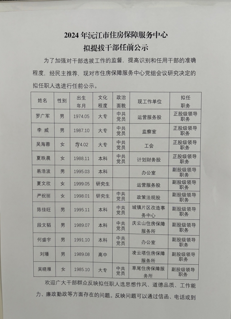 2024年沅江市住房保障服務(wù)中心擬提拔干部任前公示