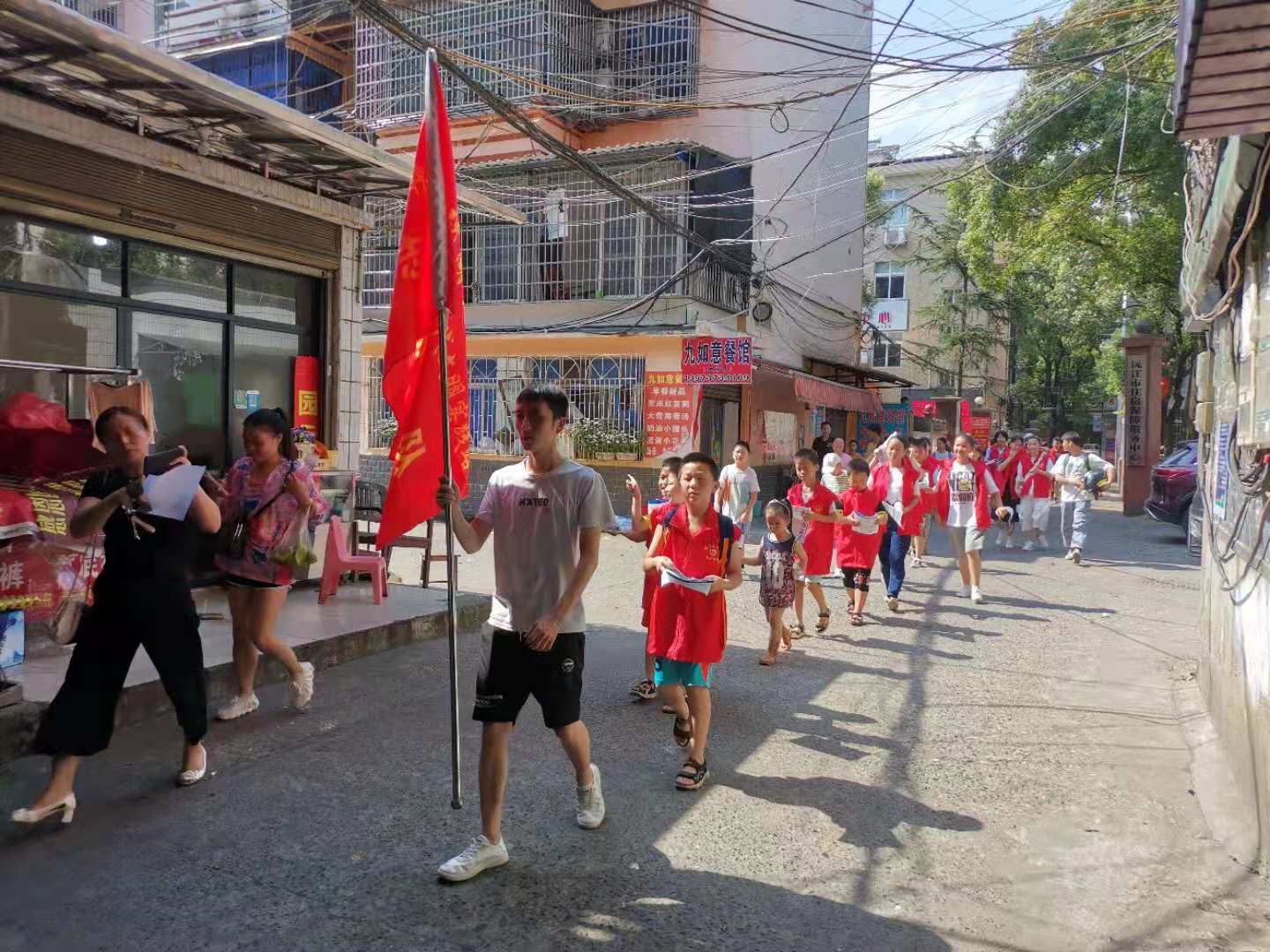 炎炎酷暑下,志愿者們年紀雖小,志氣卻高。頂著烈日,向過往居民積極宣傳預防溺水、文明創建、安全教育、疫苗接種、征兵、預防毒品等知識。他們真正做到了文明從腳下起步,創建從你我做起,跑遍大街小巷,沒有留下一片垃圾,繪就了街道一道最靚麗的紅色風景線。