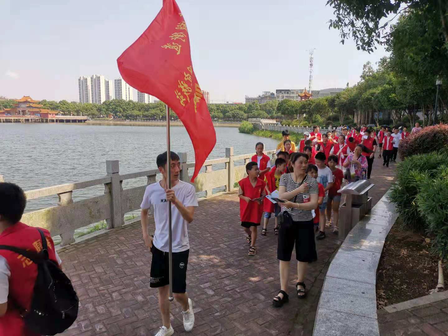 7月,沅江市瓊湖街道發動社區組織青少年開展志愿服務活動,街道轄區出現了一道靚麗而顯眼的紅色“風景線”,多名青少年志愿者穿著鮮艷的紅馬甲,跟隨高高揚起的志愿者旗幟,穿行在各條大街小巷。