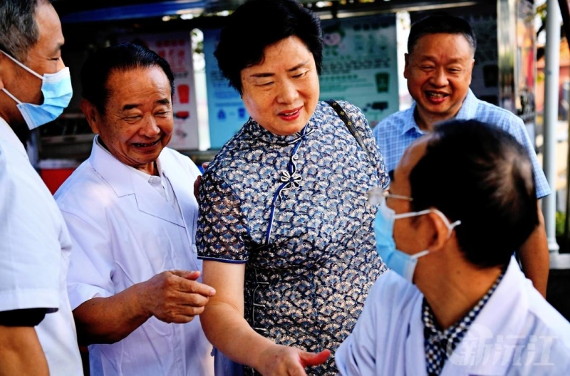 李麗君邊走邊看,詳細了解義診情況,現場慰問老專家、老教授,并親身體驗義診過程。