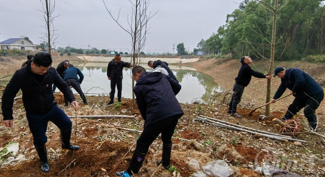 活動當天,黨員干部們熱情高漲,早早攜帶鐵鍬、水桶等植樹工具抵達林場。在林場技術人員的專業指導下,大家迅速分組,有條不紊地投入到植樹勞作中。扶苗、培土、踩實、澆水,每一道工序,大家都做得認真細致,一絲不茍。眾人齊心協力,用汗水為龍虎山國有林場增添了一片生機勃勃的新綠。