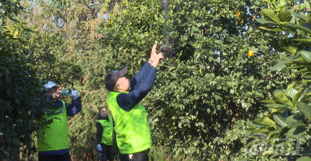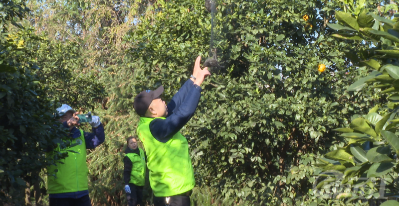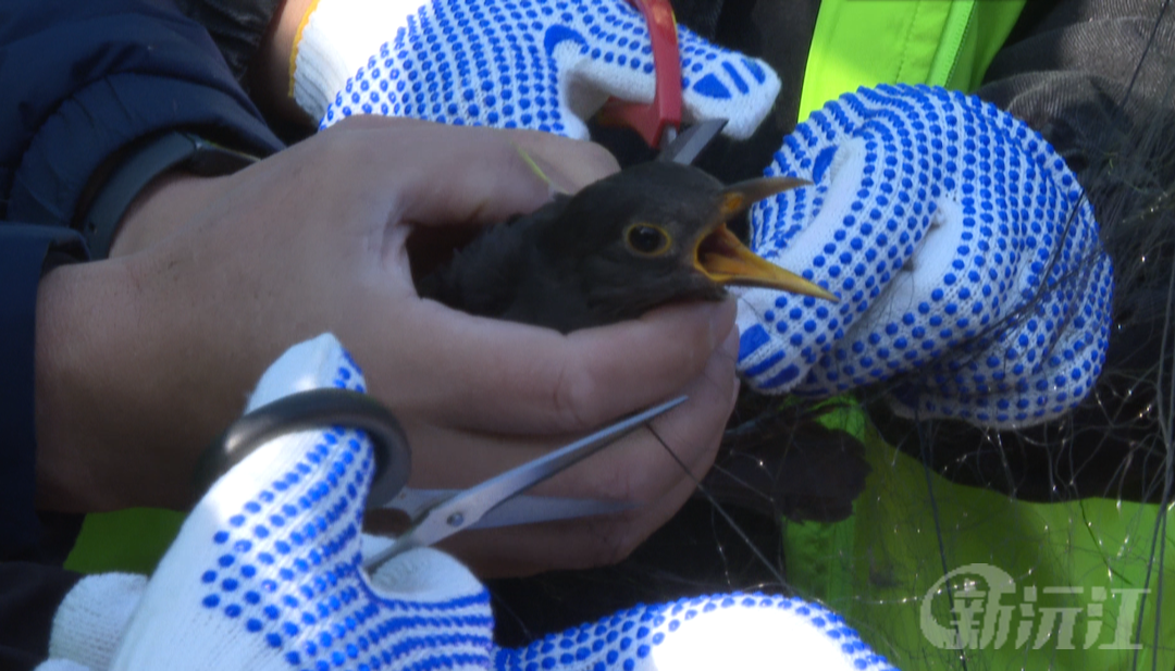 行動(dòng)中,經(jīng)過反復(fù)搜尋,環(huán)保志愿者協(xié)會(huì)的志愿者在居民屋后的一片橘林中發(fā)現(xiàn)了一處非法圍網(wǎng)區(qū)域。該鳥網(wǎng)高約3米,寬約30米,上面還掛著兩只正在掙扎的烏鶇,他們當(dāng)即將圍網(wǎng)的竹竿拔起,用剪刀將烏鶇身上殘留的網(wǎng)線仔細(xì)清理,掙脫了束縛后的烏鶇揮舞著翅膀飛向空中。