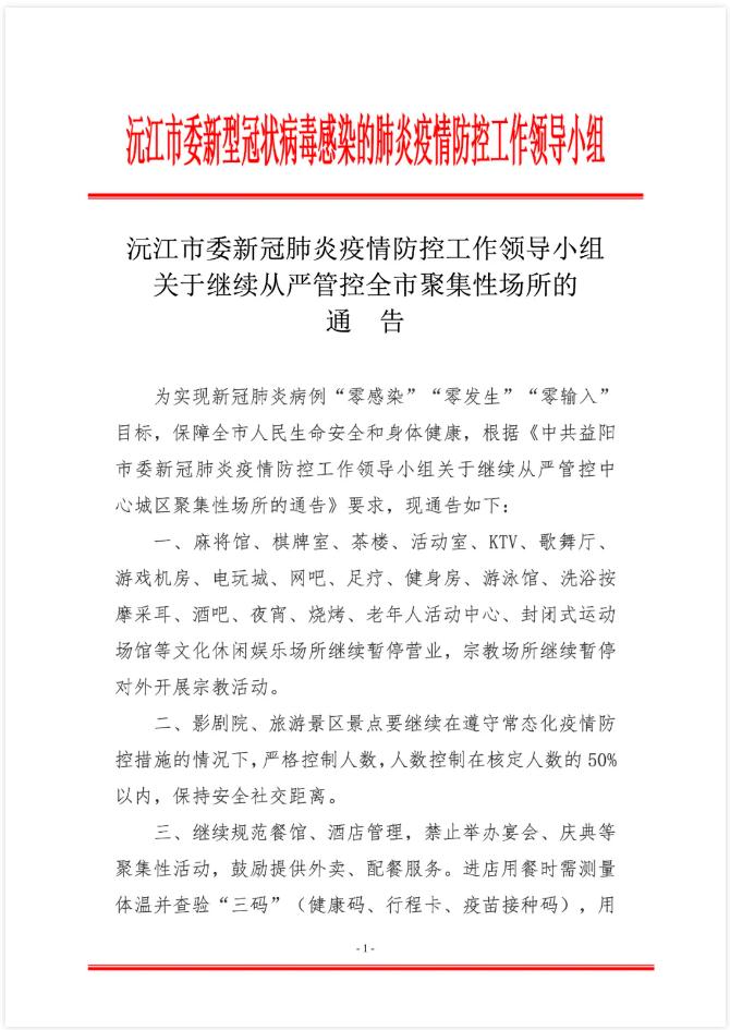 沅江:繼續(xù)從嚴(yán)管控全市聚集性場(chǎng)所