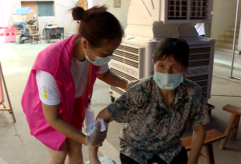 在草尾鎮(zhèn)、陽邏洲鎮(zhèn)的醫(yī)院內(nèi),婦聯(lián)志愿者們正在維護(hù)現(xiàn)場(chǎng)秩序,提醒排隊(duì)的居民戴好口罩、注意間隔距離,并協(xié)助醫(yī)護(hù)人員嚴(yán)查“三碼”,為等待接種疫苗的居民送上礦泉水等。與此同時(shí),婦聯(lián)志愿者們還督促周邊商鋪落實(shí)防疫要求,聯(lián)動(dòng)商戶共同做好社會(huì)面防控工作。