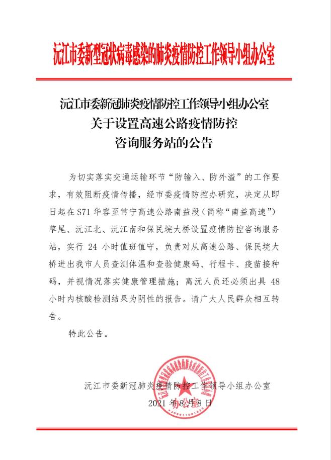 防輸入、防外溢!即日起,沅江高速路口實行24小時值班值守