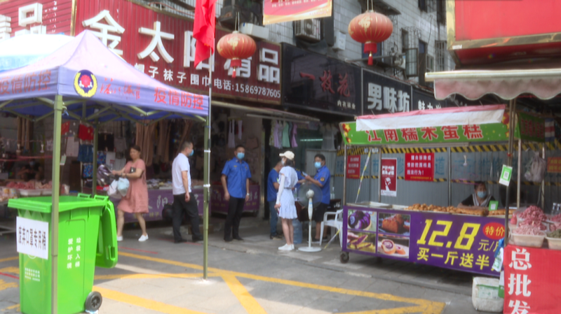 湘北市場作為沅江市人員流動最為密集的場所,為進一步落實市委、市政府對疫情防控重點區域的防控要求,市城管局下屬湘北辦、市政中心、城管大隊、環衛中心、規劃中隊、園林中心、路燈所以及抄牌中隊8個二級機構黨支部100余名黨員進駐湘北市場,各司其職,嚴格落實疫情防控點值守查驗制度,對市場從業人員監測、檢查和消毒全覆蓋。同時,每天主動上門進門店為門店業主測體溫、三碼聯查,確保疫情防控無死角。