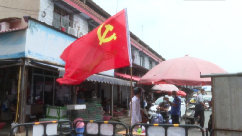 烈日炎炎,在湘北市場,市城市規劃執法大隊黨支部書記鐘潔將一面鮮紅的黨旗交到駐守在一線的市城市規劃執法大隊全體黨員手中,要求所有黨員必須嚴格落實疫情防控點值守查驗制度,對進入市場的市民,督促其要間隔開距離,并佩戴口罩、測體溫、“三碼”聯查,發現黃碼、紅碼、體溫超高者,立即上報疫情防控指揮部。