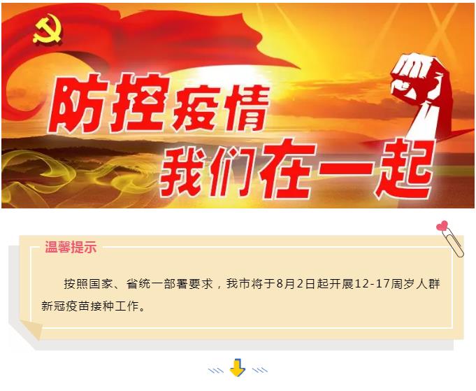 溫馨提示 | 12-17周歲兒童、青少年新冠疫苗接種方案來了