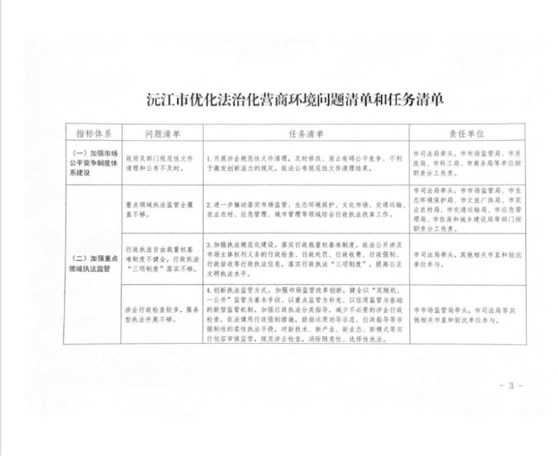 關于《沅江市優化營商環境問題清單和任務清單》的通知