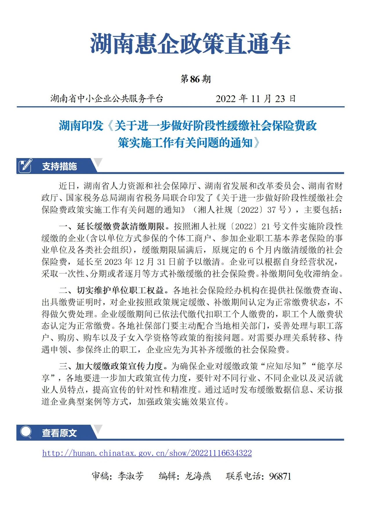 湖南印發《關于進一步做好階段性緩繳社會保險費政策實施工作有關問題的通知》